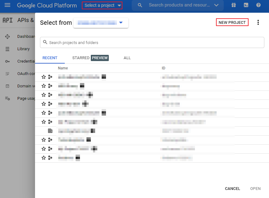 - Click Select a project and hit NEW PROJECT in the upper-right corner of the pop-up window.1