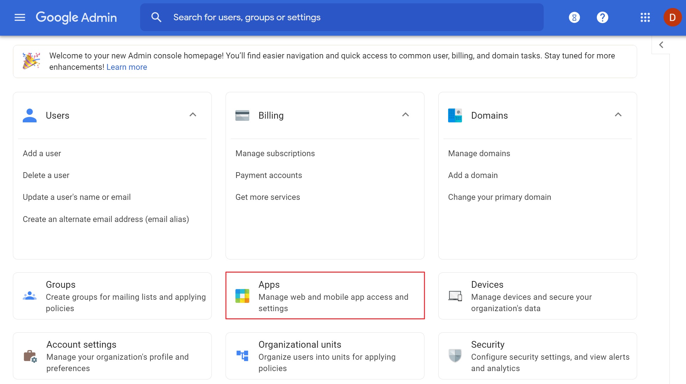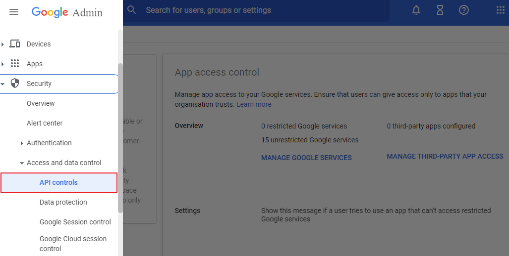 - Sign in to Google Admin console with the credentials of the domain you wish to back up.