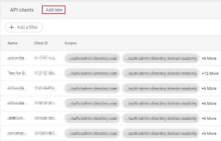 - You will automatically jump to the page listing service accounts. Find the newly created account. Click