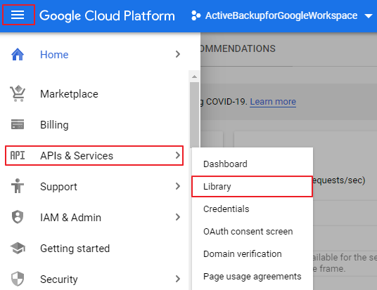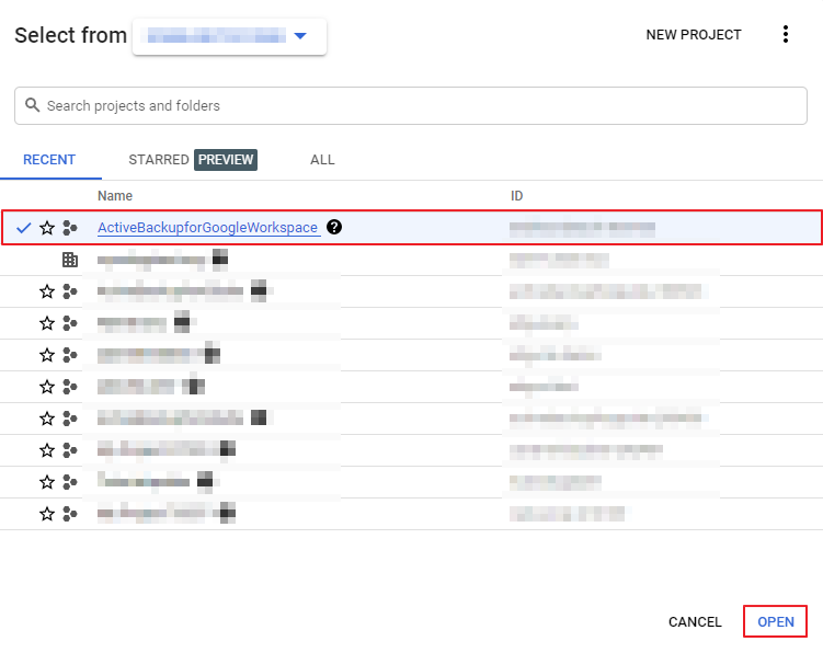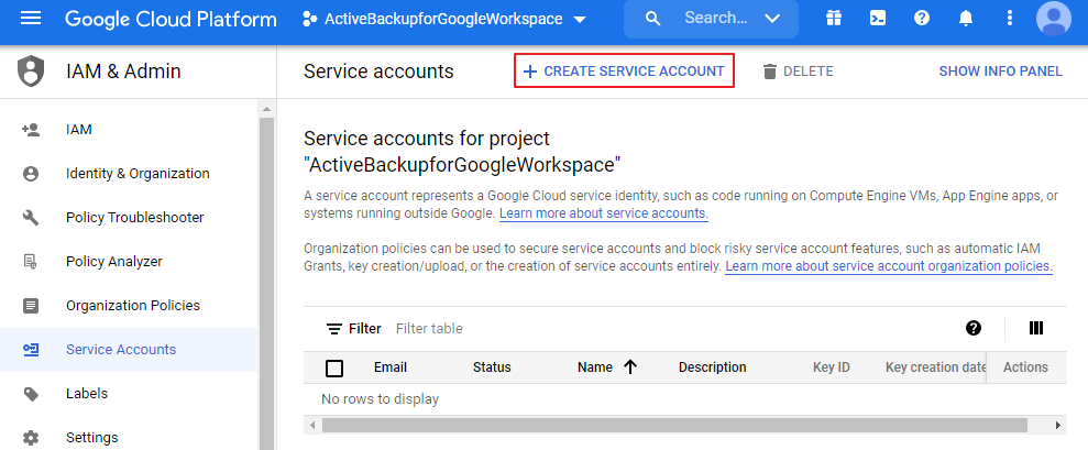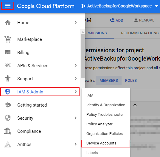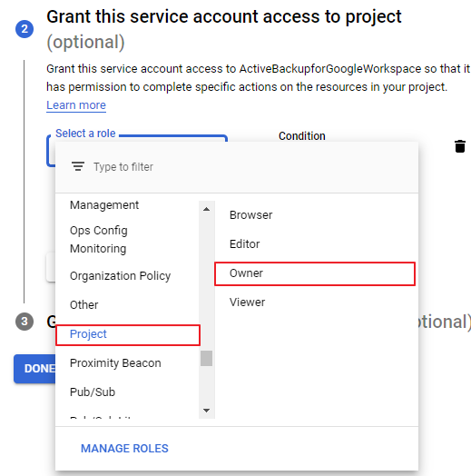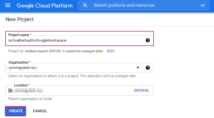 - It is suggested that you create a project specifically dedicated to Active Backup for Google Workspace to ensure privacy.