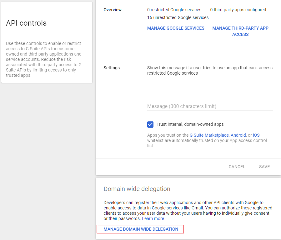 - Click MANAGE DOMAIN WIDE DELEGATION at the bottom of the page.
