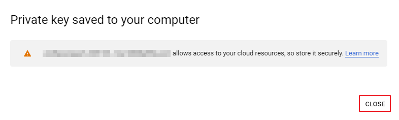 - The key will be automatically saved to your computer. Click CLOSE.2